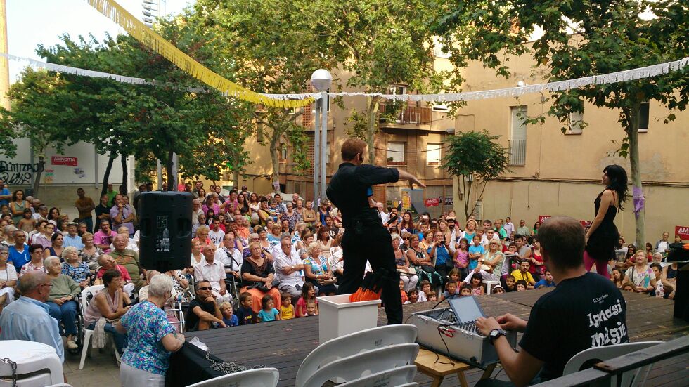 L’il·lusionista va omplir de gom a gom la cèntrica Plaça del Poble Romaní amb un públic molt entregat que va poder presenciar la màgia i les coreografies del Mag Stigman juntament amb la col·laboració de la seva partenaire Sandra Bracke i el regidor de l’espectacle Álvaro Durán.