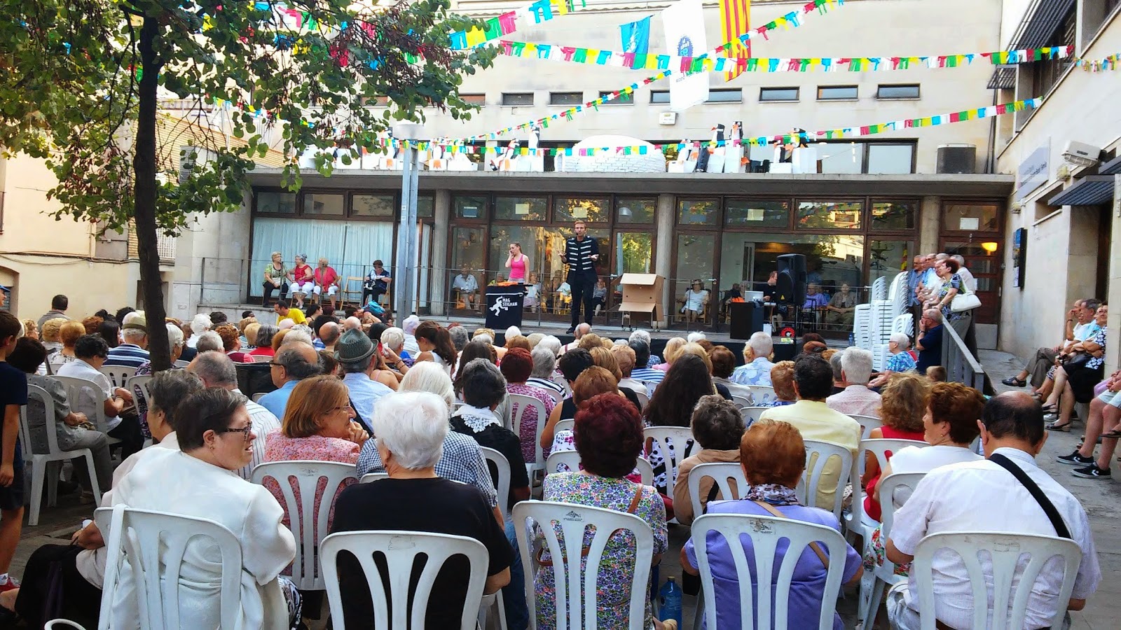 La tercera actuació, va ser el dimarts 19 d’agost a les 18 hores a l’Espai de la Gent Gran. Deu minuts abans de l’inici de l’espectacle, ja estaven totes les cadires agafades per uns espectadors molt agraïts i entregats. Ens va agradar molt poder actuar en aquest espai, ja que hi havia un públic molt variat veient el nostre show. Teniem des d’una nena de 3 anys, fins a una senyora de 97 anys!!! Tot plegat, no ens importava pas l’edat, sinó les ganes de veure un espectacle amb molt més que màgia!