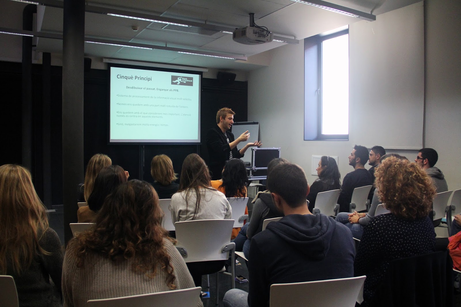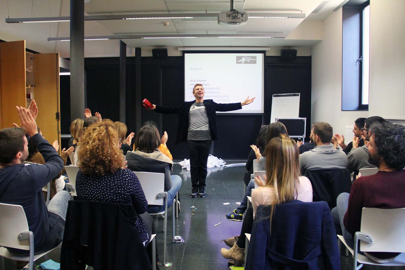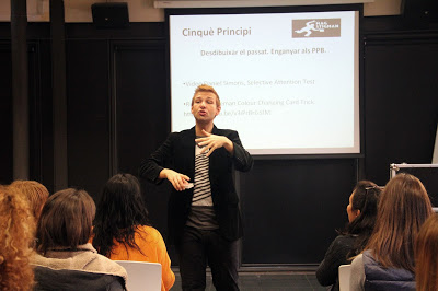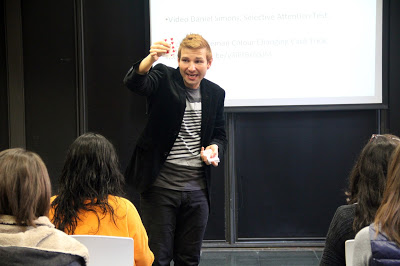 Durant una hora i mitja van tractar temas com la màgia aplicada, la persuasió, així com els principis psicològics que s’amaguen darrere de qualsevol efecte d’il·lusionisme. La dinàmica del taller va ser fantàstica ja que tots els participants van formar un grup molt interactiu i entregat.