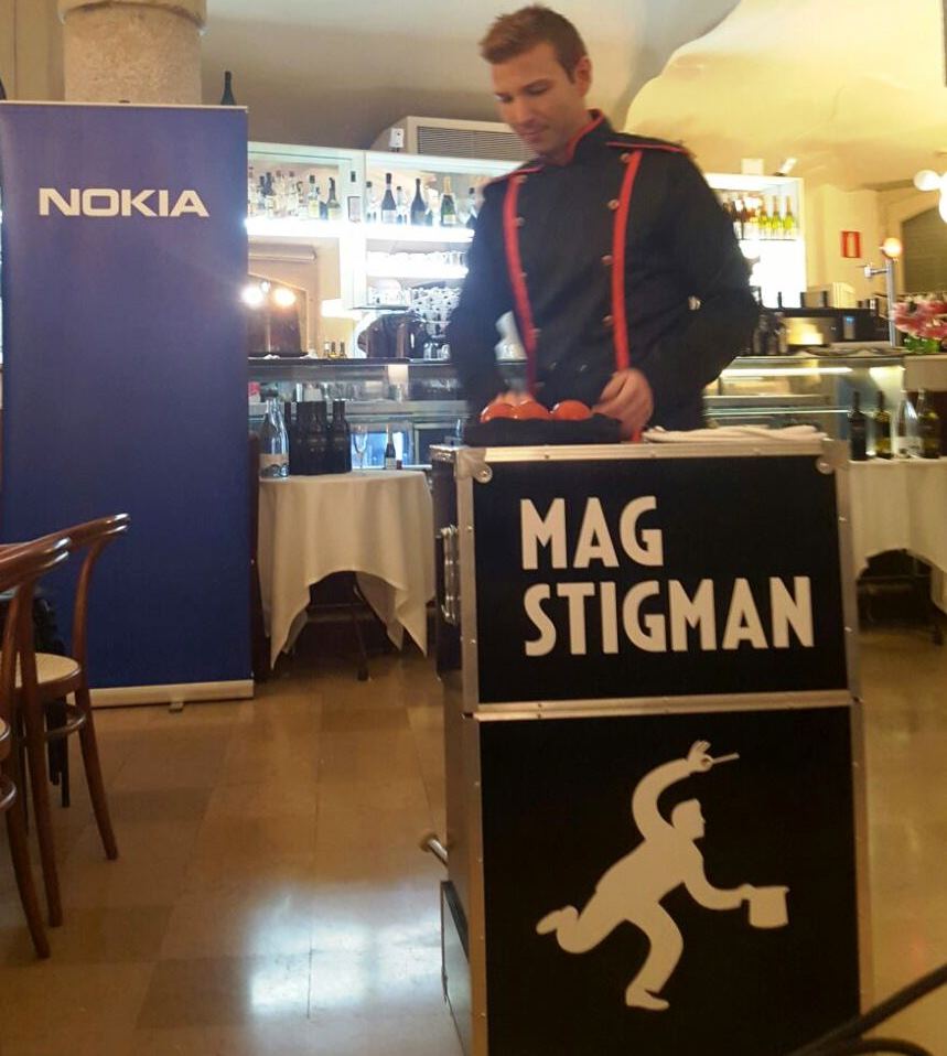 El Mag Stigman va ser l’encarregat d’amenitzar un dels sopars dels directius de l’empresa de telefonia Nokia amb motiu del Mobile World Congress celebrat a la ciutat de Barcelona del 22 al 25 de febrer del 2016. Aquest sopar concretament va tenir lloc el passat dimarts 23 de febrer a l’edifici de la Pedrera de Barcelona.