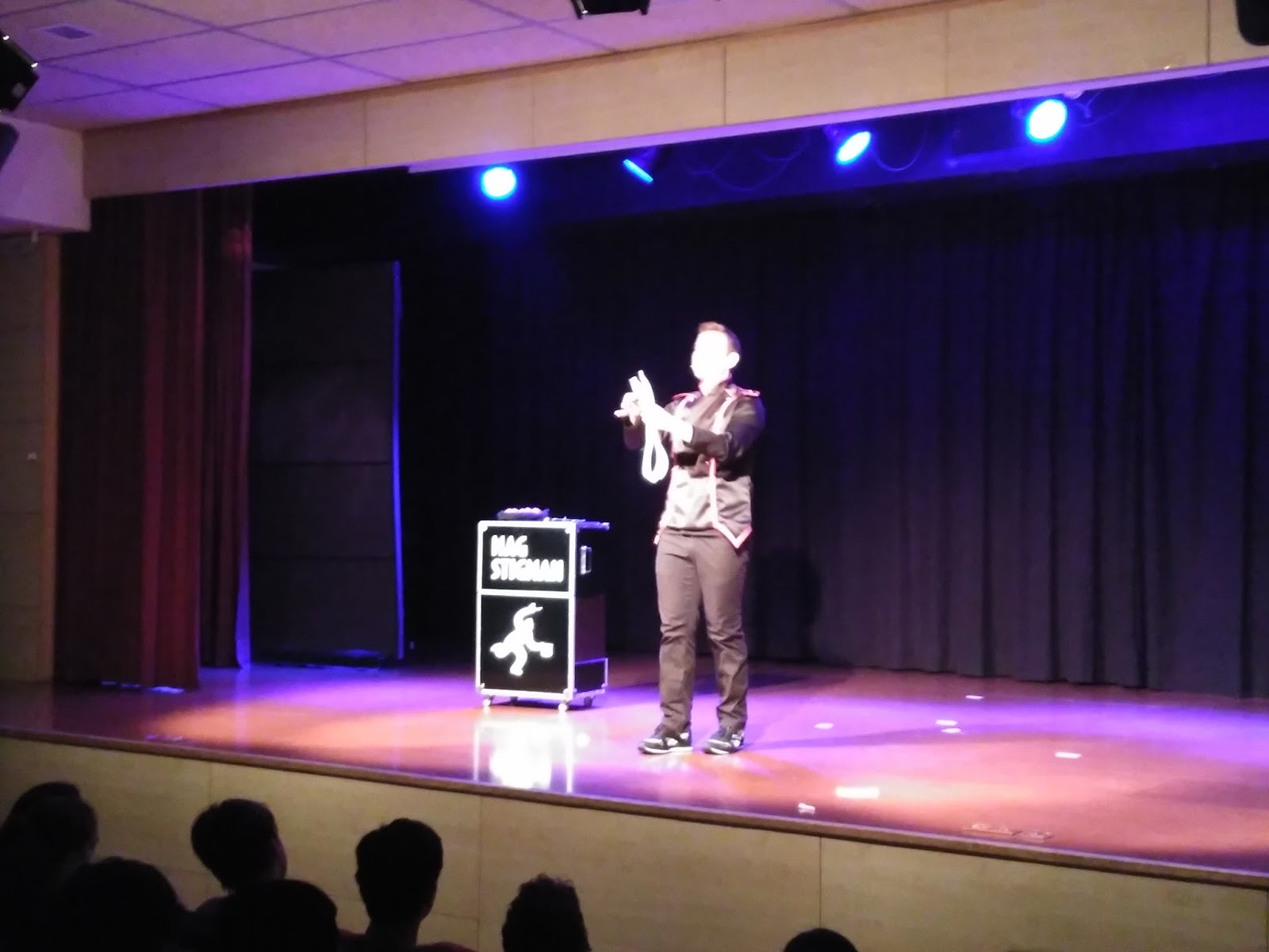 Com ja us hem dit, és el tercer any que l’artista actua en aquesta escola que per cert, disposa d’una moderna sala d’actes amb molt bones prestacions i que no ha d’envejar res als teatres professionals. Durant els dos dies d’actuacions, tant els alumnes (que eren joves adolescents) com els professors que van assistir a l’espectacle, van participar al màxim del show i van viure la màgia completament. Va ser tot un plaer poder actuar per ells.
