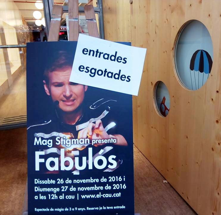Este pasado fin de semana el Mago Stigman ha estado representando el espectáculo «Fabulòs» en el teatro del Cau. La sorpresa más grande que nos hemos llevado ha sido poder ver como las dos funciones se han llenado de público y se han agotado todas las localidades.