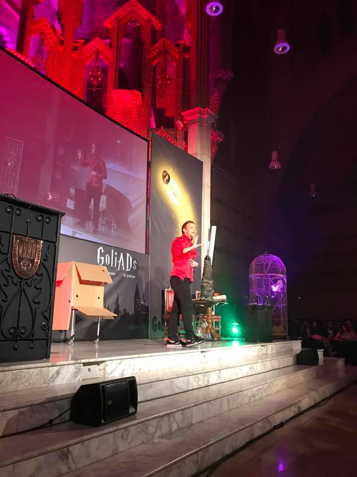 El pasado jueves 11 de mayo del 2017, el Mago Stigman participó en la gala de los premios de publicidad Goliads. Como podéis ver en estas imágenes, el ilusionista mostró parte de su show en la entrega de estos galardones que son decididos anualmente por estudiantes de publicidad y relaciones públicas. El certamen que organiza la Universidad Abat Oliba de Barcelona tuvo lugar en el Aula Magna de dicha universidad y contó con la presencia de personalidades públicas, prensa y representantes de diversas instituciones.