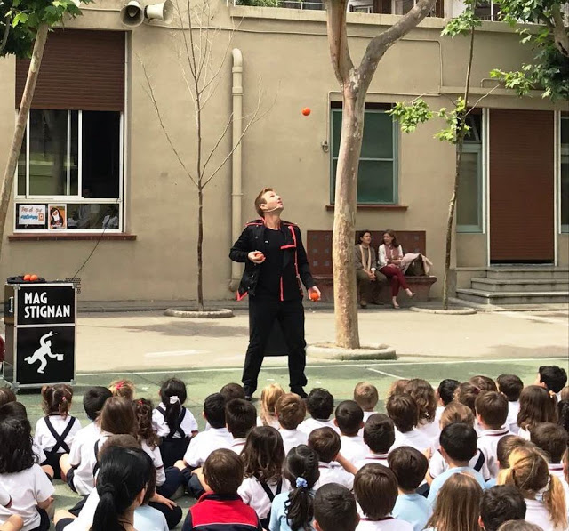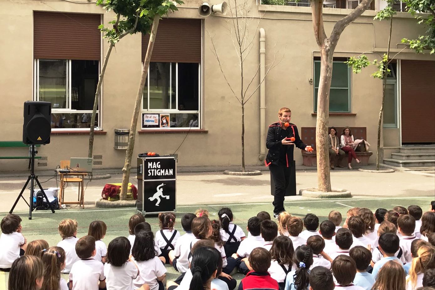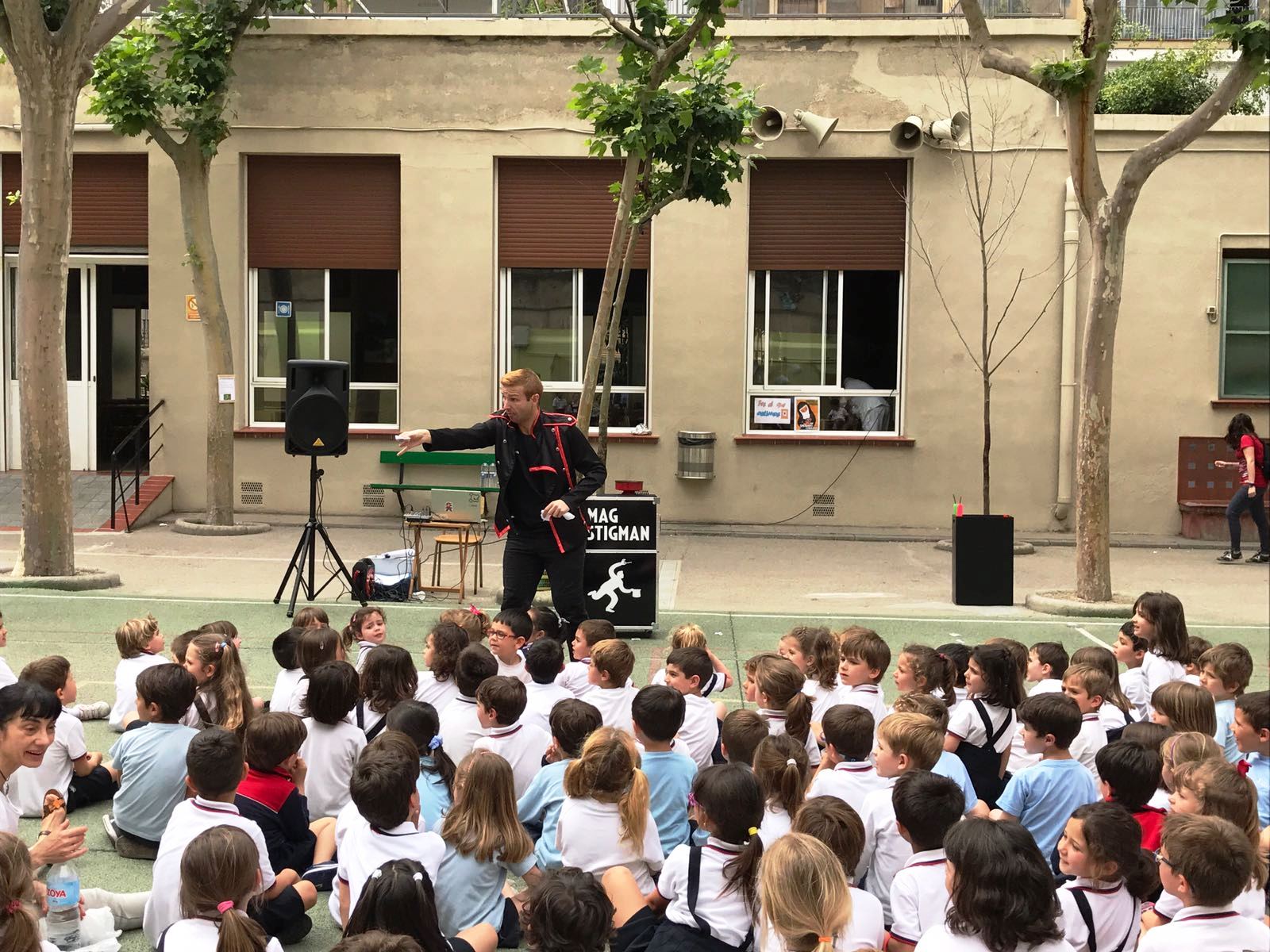 El pasado jueves 18 de mayo del 2017 nuestra compañía volvió a actuar, como ya lo ha hecho otros años, en la Escuela Shalom de Barcelona para los alumnos de P3 a 2º de Educación Primaria. Presentamos un espectáculo de magia y baile que en esta ocasión estaba dirigido a alumnos que tienen entre 3 y 7 años.