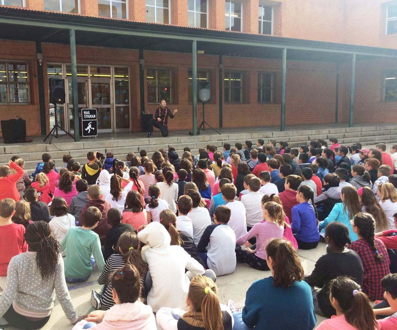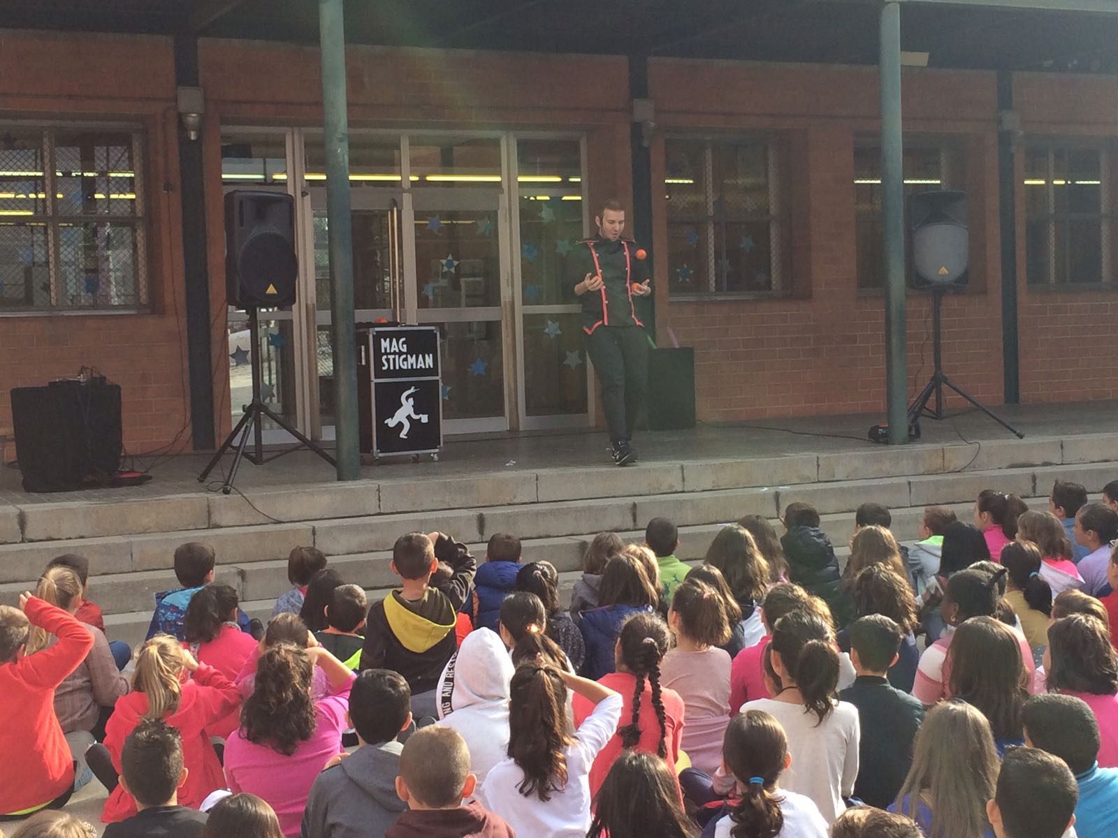 Todos los alumnos, los profesores y los padres y madres del AMPA participaron muchísmo y lo pasaron en grande con el show de Stigman. Fue un auténtico placer actuar en este centro. El montaje que mostró el artista, es una propuesta diseñada especialmente para representarla en escuelas.