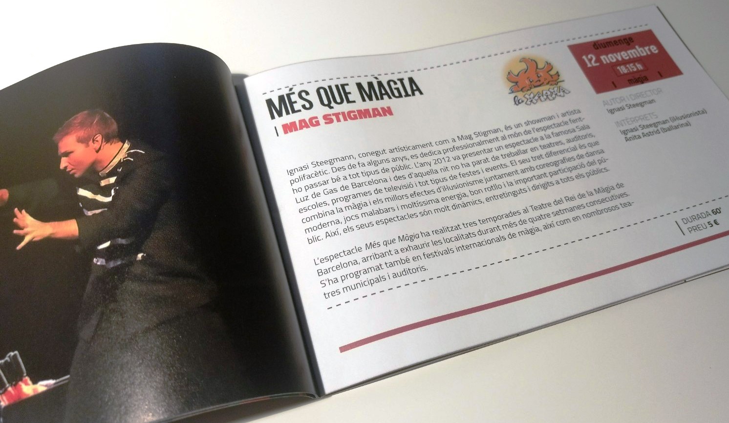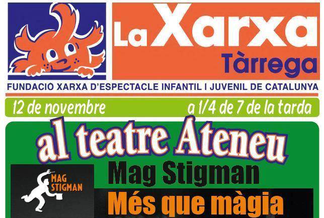 Este espectáculo tuvo lugar dentro ciclo de espectáculos familiares de Xarxa Tàrrega y que organiza y programa la prestigiosa Fundació Xarxa de espectáculo infantil y familiar de Cataluña. La propuesta que presenta el ilusionista Stigman está incluida y recomendada dentro del catálogo de dicha fundación, cosa que nos hace muy felices y nos alegra muchísimo.