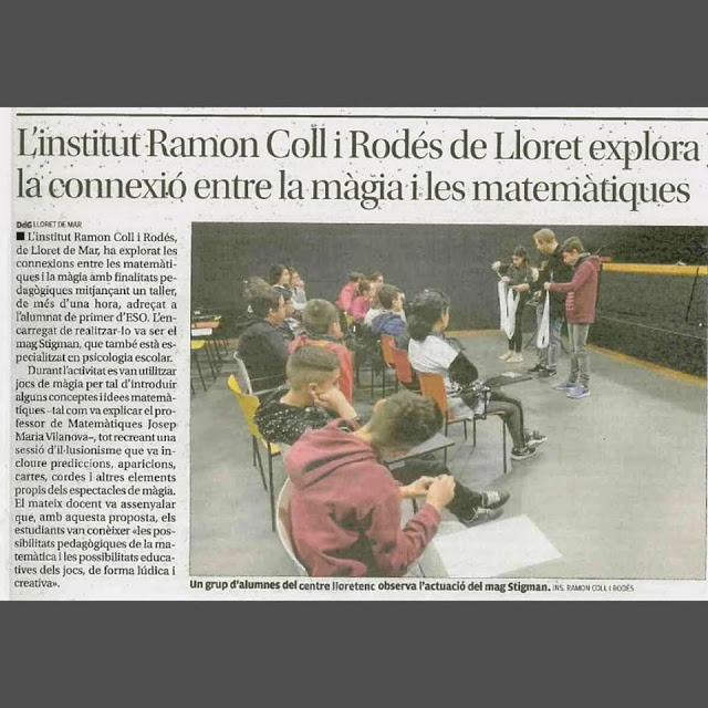 También incluía declaraciones del Sr. Josep Vilanova, profesor de matemáticas del Institut Coll i Rodés que fue quien organizó estas sesiones: «Durante la actividad se utilizaron juegos de magia para introducir algunos conceptos e ideas matemáticas, recreando una sesión de ilusionismo que incluyó predicciones, apariciones, cartas, cuerdas y otros elementos propios de los espectáculos de magia. Con esta propuesta, los estudiantes conocieron «las posibilidades pedagógicas de la matemática y las posibilidades educativas de los juegos, de forma lúdica y creativa»«.