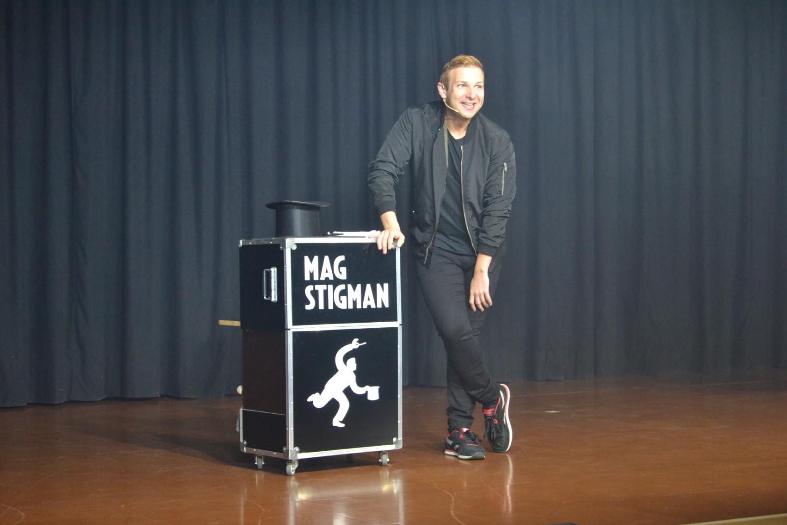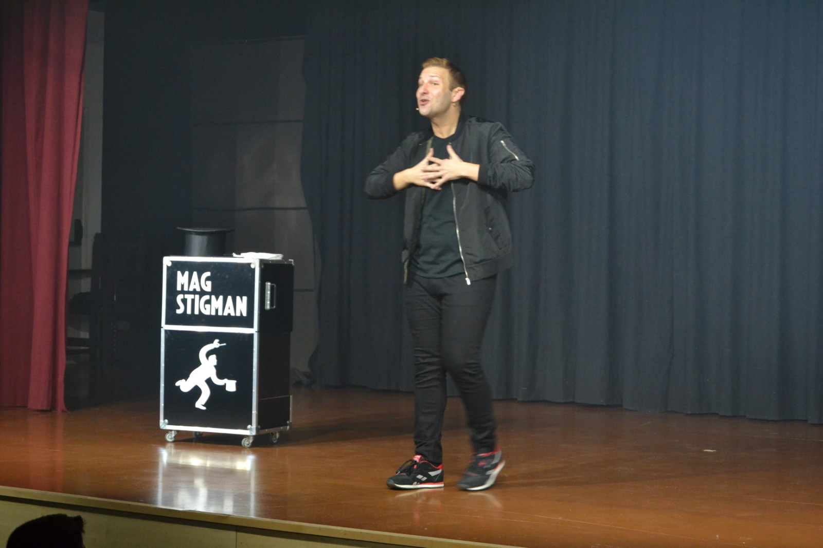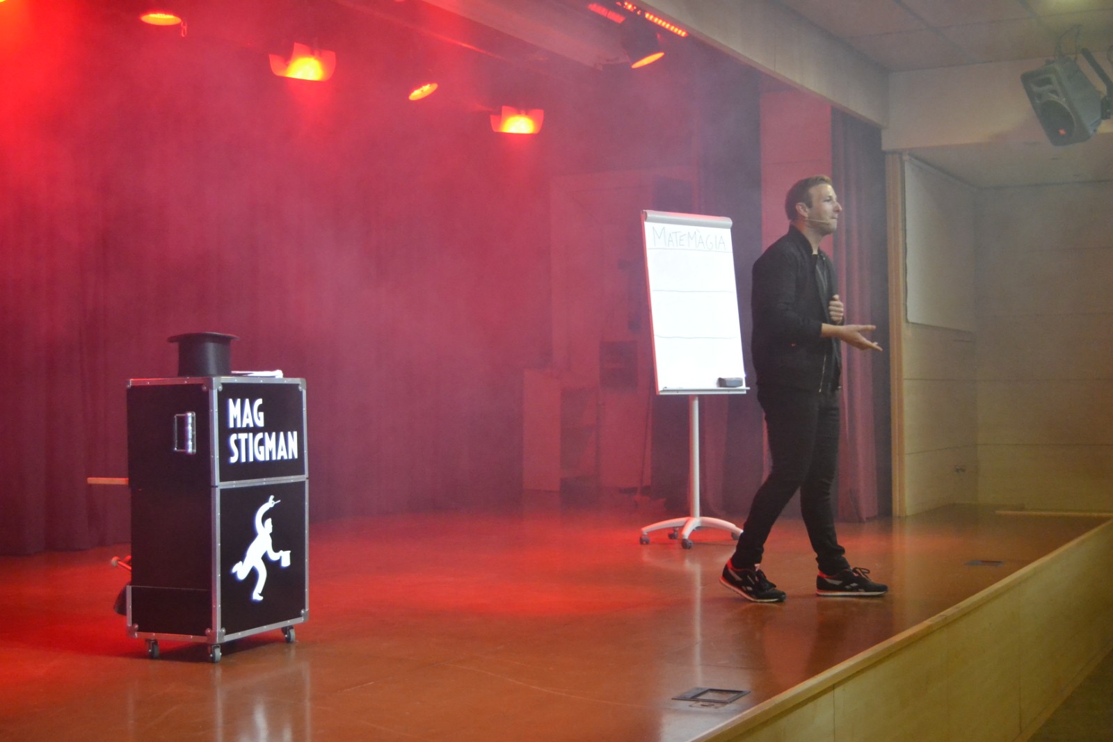 Los pasados lunes, 11, y martes, 12, de junio el Mag Stigman actuó en la Escola Joan Pelegrí de Barcelona haciendo su espectáculo Matemagia para los alumnos de 1º y 2º de ESO. En total más de 400 alumnos vieron el espectáculo. Éste es el 5º año consecutivo que el Mag Stigman actúa en este centro educativo y, como siempre, ¡fue un auténtico placer!