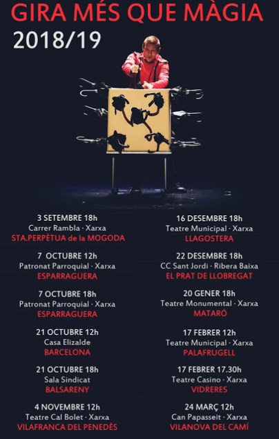 Aquí os presentamos el cartel con la gira del último espectáculo que el Mago Stigman y su compañía estamos últimamente representando por teatros, «Más que Magia«. Podéis encontrar varias de las fechas que ya están confirmadas. Más adelante, ampliaremos el cartel con nuevas funciones y nuevos emplazamientos. Todo con el objetivo de que vengáis a vernos en directo y podáis sentir la magia y el buen rollo que nos gusta transmitir. A continuación, podéis leer la sinopsis del espectáculo: