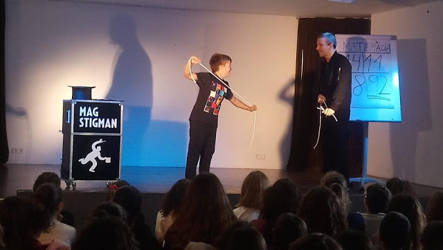 Esta propuesta va dirigida a los alumnos de la ESO y de bachillerato, y además de ser un espectáculo muy divertido y sorprendente, es una actividad completamente pedagógica. Durante 90 minutos, los estudiantes aprenden razonamiento matemático con elementos de álgebra, cálculo, geometría y topología. Todo mediante sorprendentes trucos de magia. El Mag Stigman sorprende a los alumnos con su buen rollo y con su magia. Y a la vez, encanta a los profesores, ya que ven como sus estudiantes muestran atención y aprenden mucho sobre la aplicabilidad de las matemáticas.
