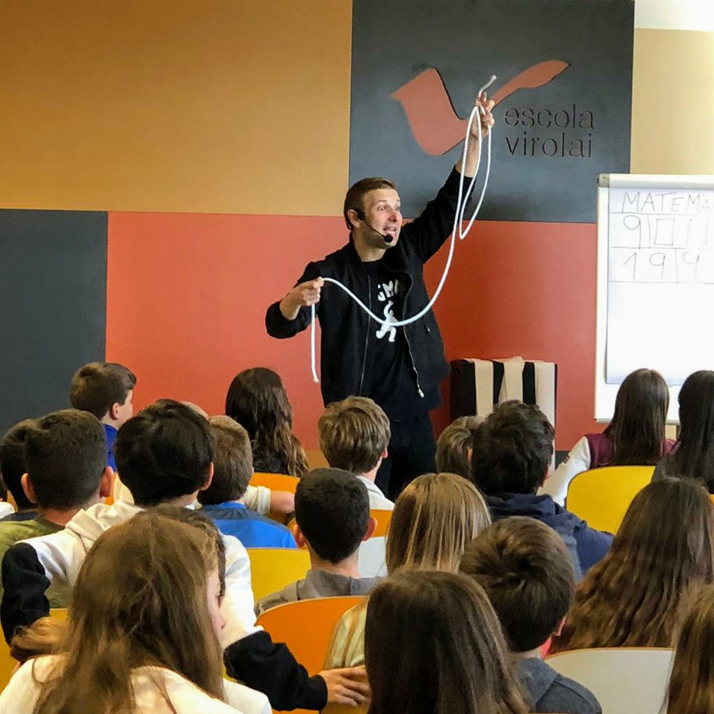 El pasado jueves 9 de mayo del 2019, el Mag Stigman se desplazó hasta la Escola Virolai de Barcelona para hacer dos representaciones del espectáculo «Matemagia. Magia y Matemáticas«. Una conferencia-espectáculo del Mago Stigman que demuestra la importancia de las matemáticas y el razonamiento científico que hay detrás de los efectos de ilusionismo.
