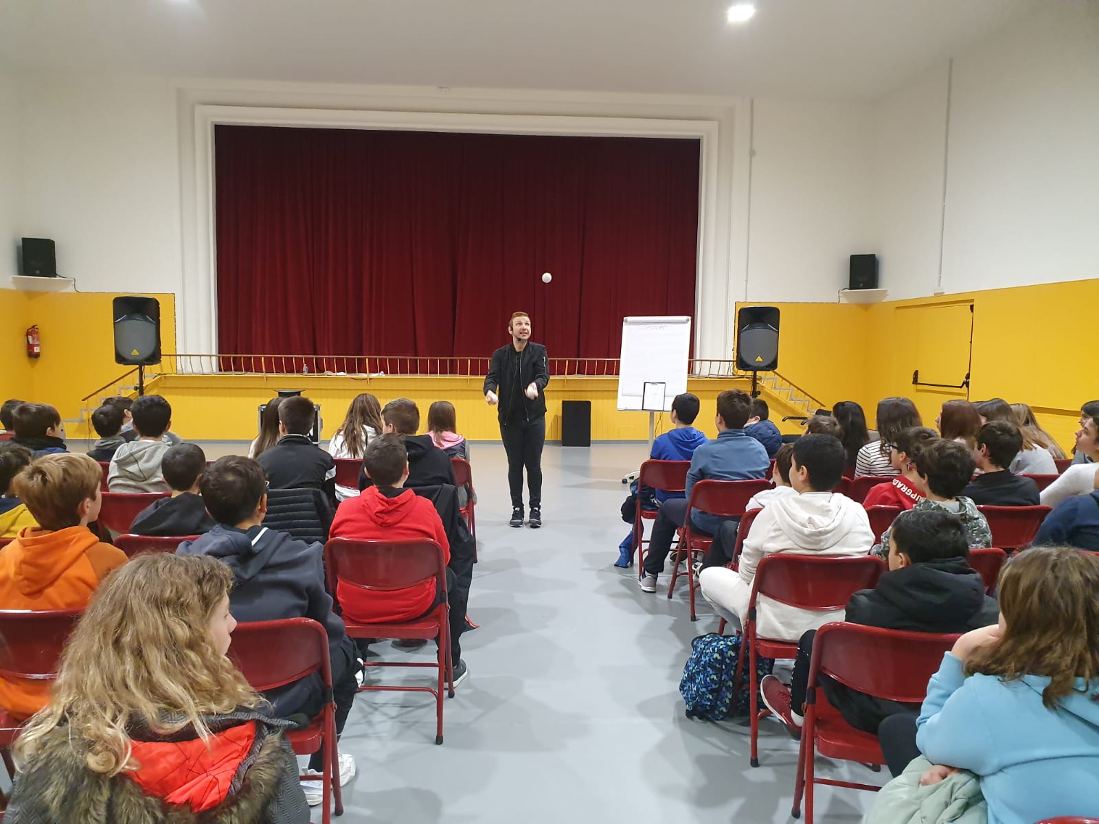 En Vilanova i la Geltrú, las dos representaciones de este espectáculo didáctico tuvieron lugar en el Instituto Manuel de Cabanyes para unos 120 alumnos que están cursando 1º de la ESO. Fue un auténtico placer actuar para ellos. Des de este blog, damos las gracias a todos los alumnos por su tan buena actitud, su buen rollo y su constante interés en el tema. Así como el agradecimiento a los profesores y dirección del centro.