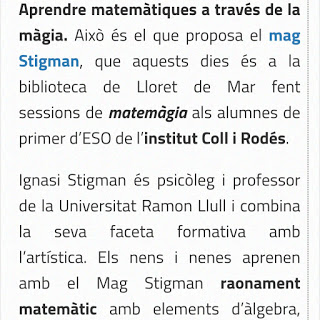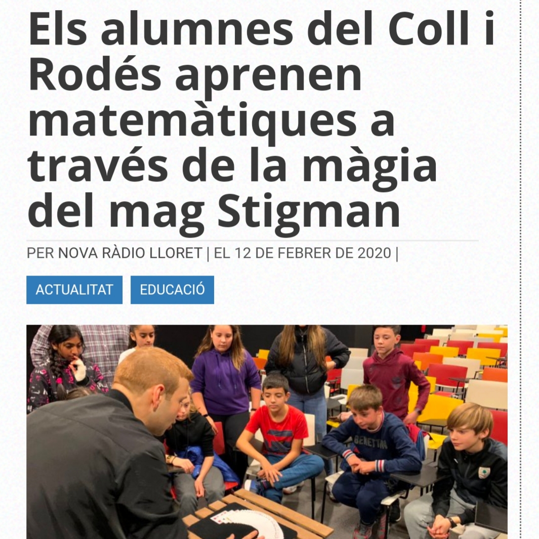 En el siguiente link podéis observar la noticia completa y escuchar las declaraciones de Ignasi Stigman: https://www.novaradiolloret.org/els-alumnes-del-coll-i-rodes-aprenen-matematiques-a-traves-de-la-magia-del-mag-stigman/