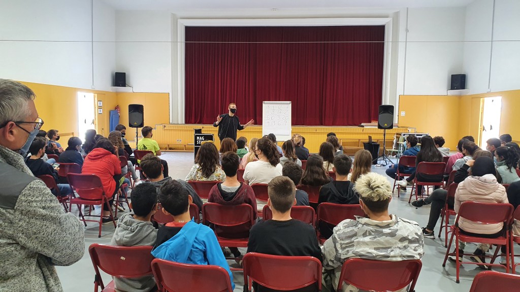 En Vilanova i la Geltrú, las dos representaciones de este espectáculo didáctico tuvieron lugar en el Instituto Manuel de Cabanyes para unos 120 alumnos que están cursando 1º de la ESO. Fue un auténtico placer actuar para ellos. Des de este blog, damos las gracias a todos los alumnos por su tan buena actitud, su buen rollo y su constante interés en el tema. Así como el agradecimiento a los profesores y dirección del centro.