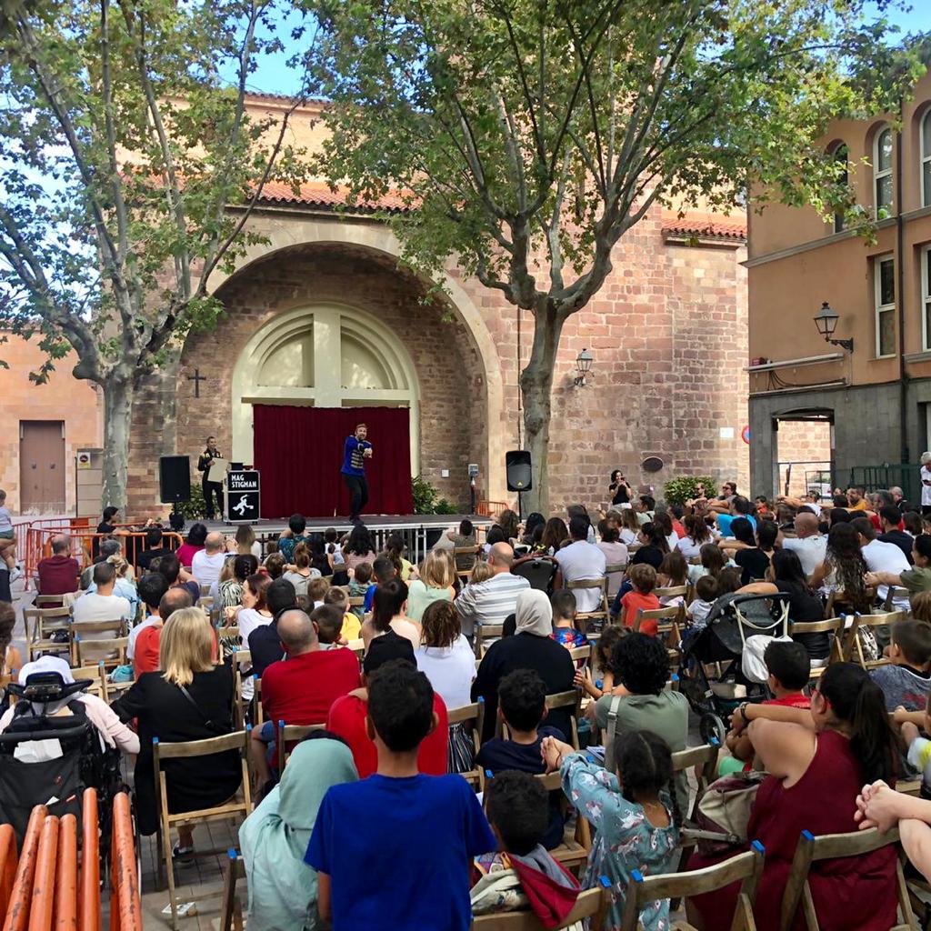 La plaza de l’ Esglesia se llenó. Había muchísima gente y la acogida no pudo ser mejor. Ignasi Stigman nos sorprendió con el circ dels impossibles, coincidiendo con la presentación de la temporada de teatro.