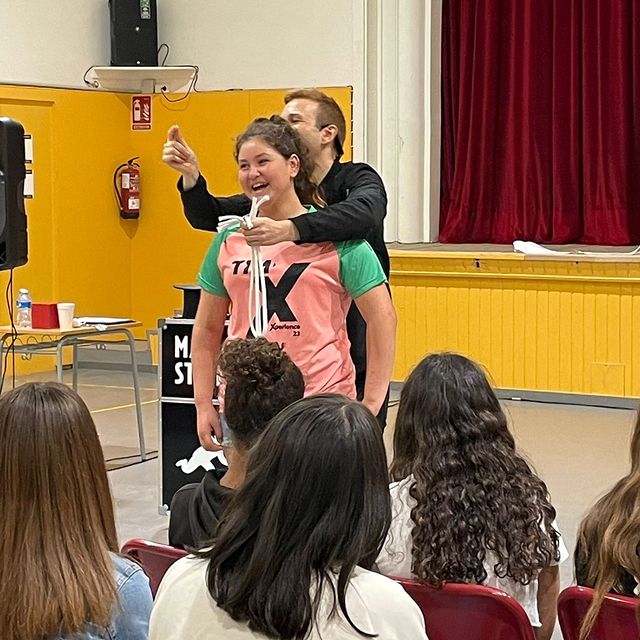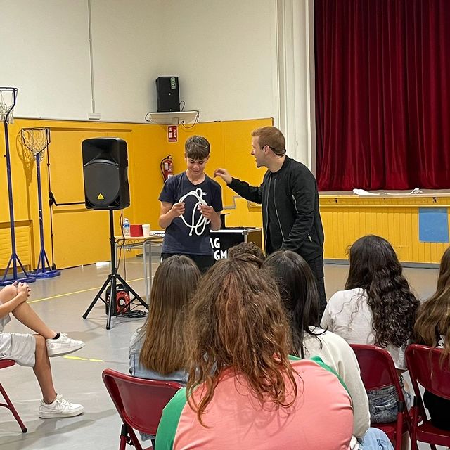 Esta propuesta va dirigida a los alumnos de primaria y de la ESO, y además de ser un espectáculo muy divertido y sorprendente, es una actividad completamente pedagógica. Durante 90 minutos, los estudiantes aprenden razonamiento matemático con elementos de álgebra, cálculo, geometría y topología. Todo mediante sorprendentes trucos de magia. El Mag Stigman sorprende a los alumnos con su buen rollo y con su magia. Y a la vez, encanta a los profesores, ya que ven como sus estudiantes muestran atención y aprenden mucho sobre la aplicabilidad de las matemáticas.