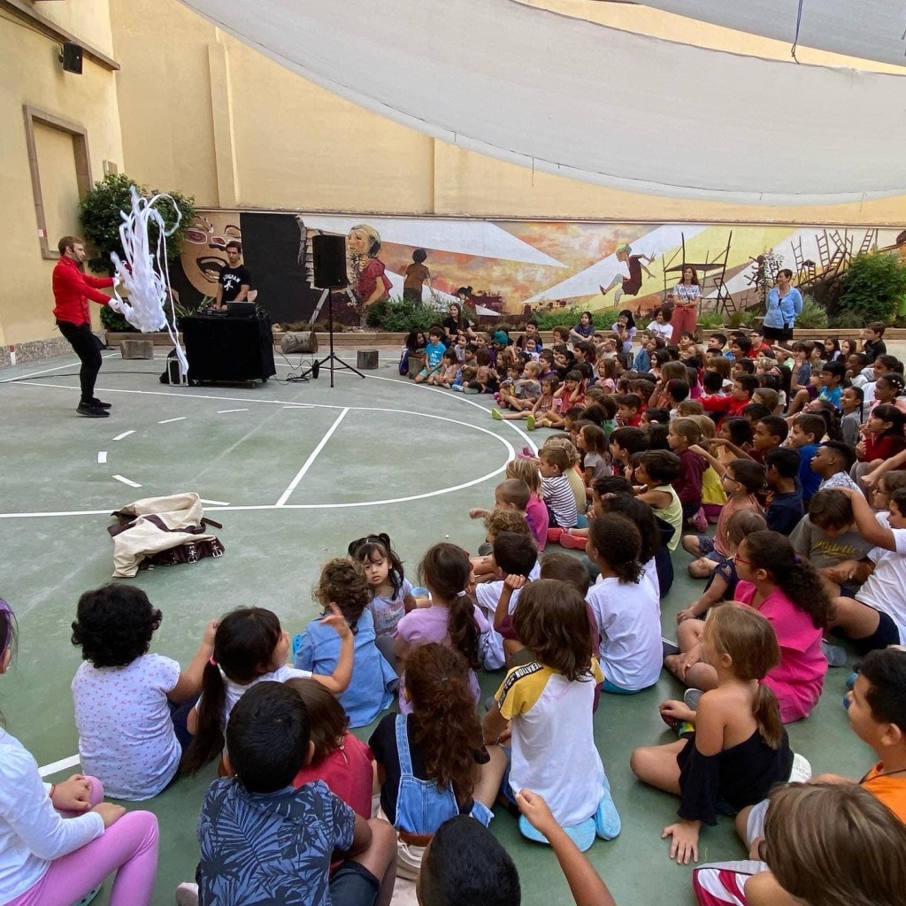 Aparte de realizar el espectáculo, Mag Stigman ofreció una formación de magia como herramienta educativa para los profesores del centro y los alumnos hicieron varios talleres de magia durante todo el curso. Al inicio del curso, hicimos el espectáculo que puedes ver en las siguientes fotos:
