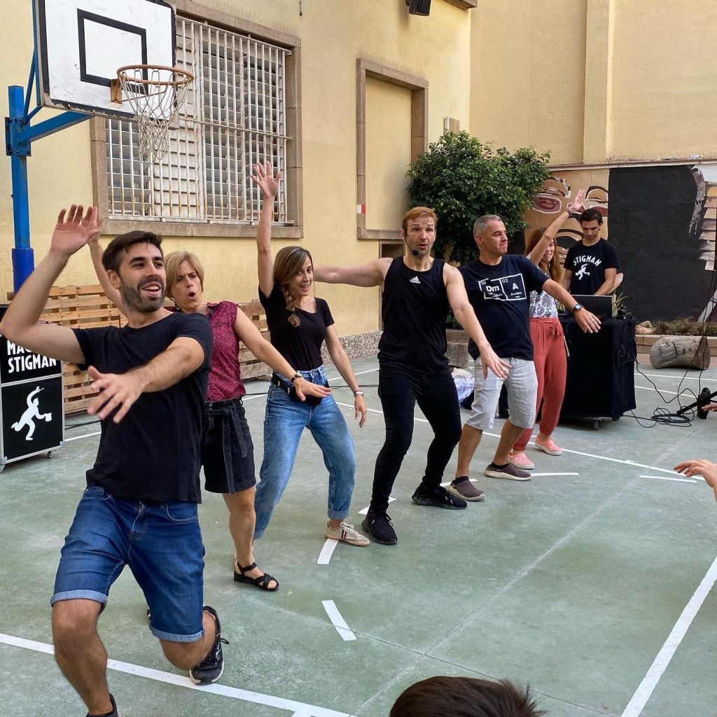 Además, cabe destacar que nuestro equipo se encarga de todo. Contamos con técnico de sonido, equipos de sonido y tenemos todo preparado para hacer la actuación en el patio del colegio, en la sala de actos o incluso en el gimnasio.