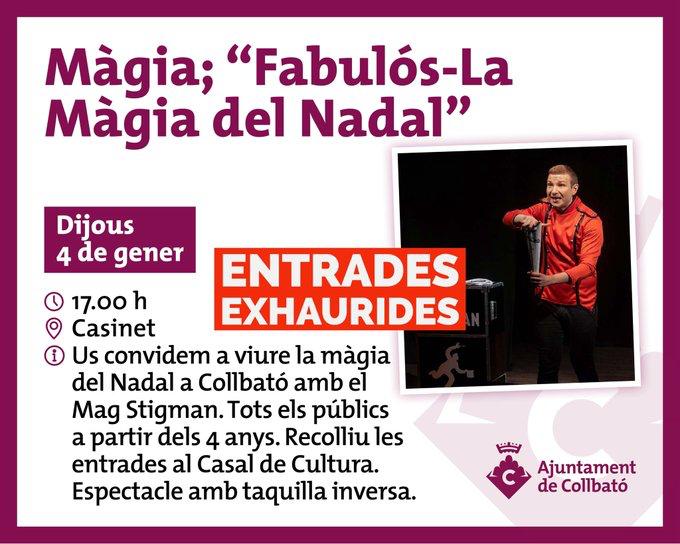 El 4 de enero a las 17:00 horas actuamos en Collbató, en un espectáculo organizado por el Ayuntamiento y rápidamente se agotaron todas las localidades disponibles.